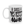 [Printed in USA] A Sass a Day Keeps the Basic Away - White 11oz Ceramic Coffee Mug