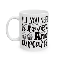 [Printed in USA] All You Need is Love and Cupcakes - White 11oz Ceramic Coffee Mug