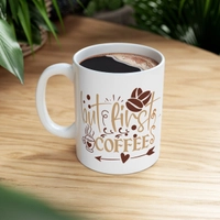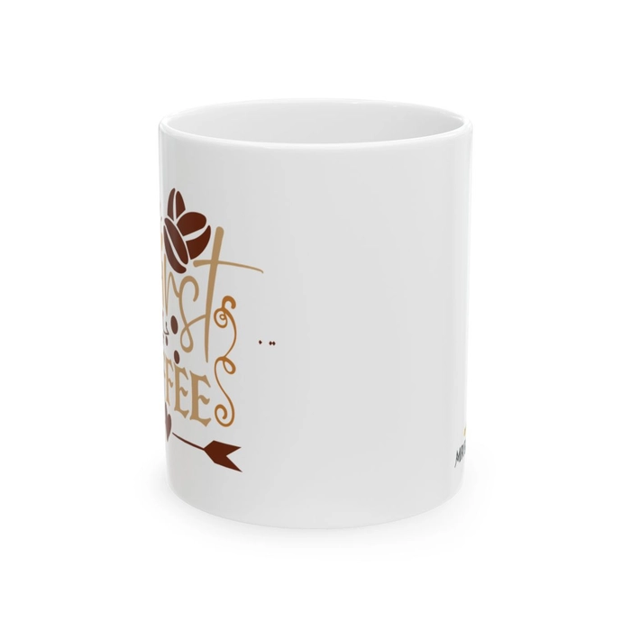 [Printed in USA] But First Coffee - White 11oz Ceramic Coffee Mug
