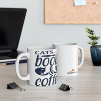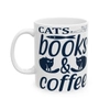 [Printed in USA] Cats Books & Coffee - White 11oz Ceramic Coffee Mug