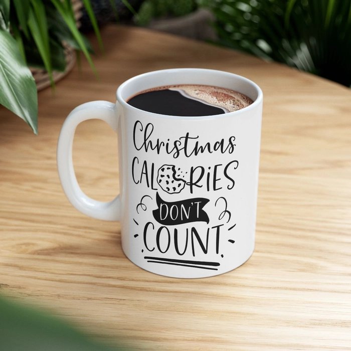 [Printed in USA] Christmas Calories Don't Count - White 11oz Ceramic Coffee Mug