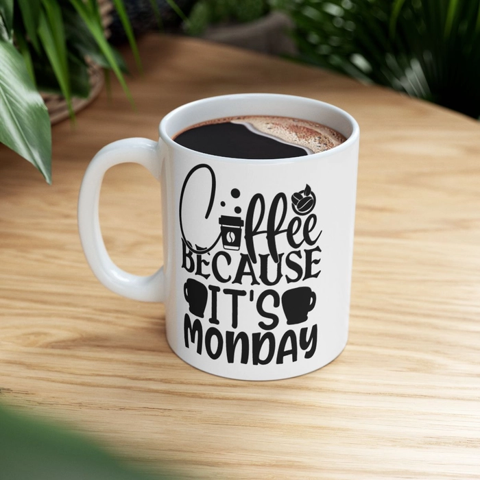 [Printed in USA] Coffee because it's Monday - White 11oz Ceramic Coffee Mug