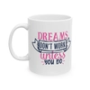 [Printed in USA] Dreams Don't Work Unless You Do - White 11oz Ceramic Coffee Mug