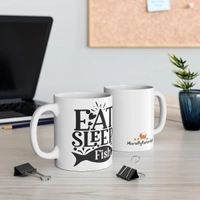 [Printed in USA] Eat Sleep Fish - White 11oz Ceramic Coffee Mug
