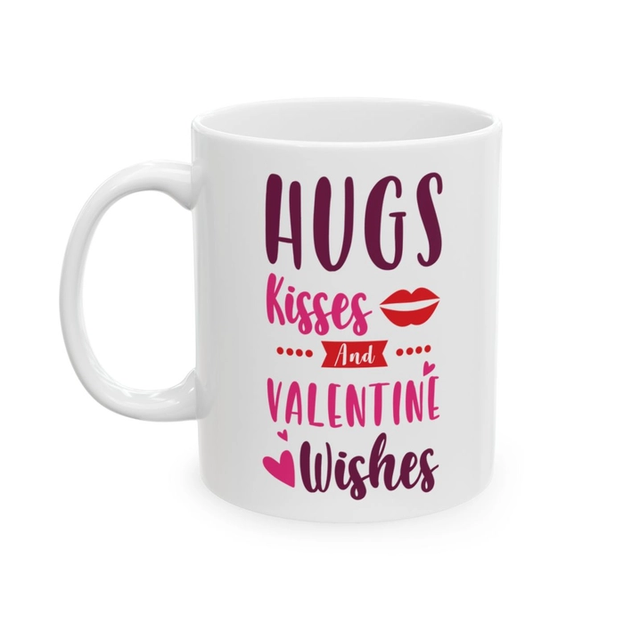 [Printed in USA] Hugs Kisses and Valentine Wishes - White 11oz Ceramic Coffee Mug