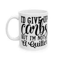 [Printed in USA] I'd Give Up Carbs but I'm Not a Quitter - White 11oz Ceramic Coffee Mug