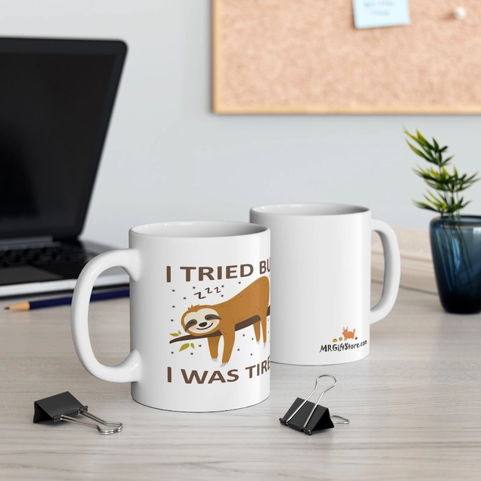 [Printed in USA] I Tried but I was Tired - White 11oz Ceramic Coffee Mug
