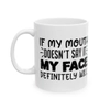 [Printed in USA] If My Mouth Doesn't Say It My Face Definitely Will - White 11oz Ceramic Coffee Mug