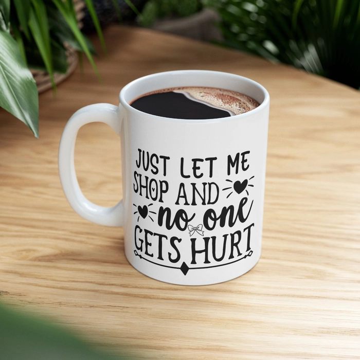 [Printed in USA] Just Let Me Shop and No One Gets Hurt - White 11oz Ceramic Coffee Mug