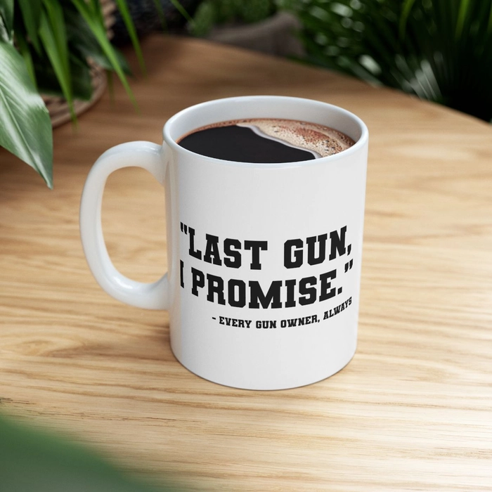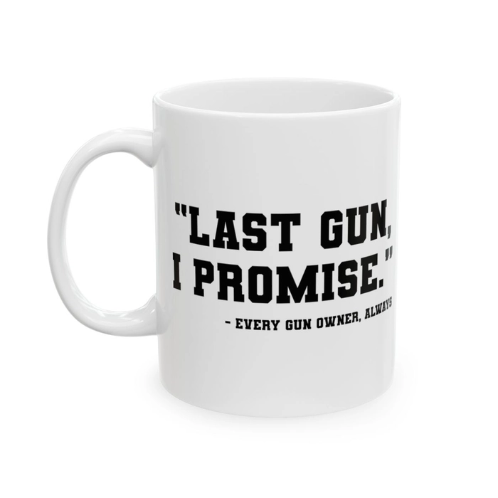 [Printed in USA] "Last Gun, I Promise." - Every Gun Owner, Always - White 11oz Ceramic Coffee Mug