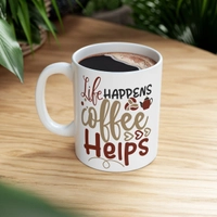 [Printed in USA] Life Happens Coffee Helps - White 11oz Ceramic Coffee Mug