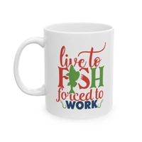 [Printed in USA] Live to Fish Forced to Work - White 11oz Ceramic Coffee Mug