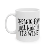 [Printed in USA] Organic Food Just Kidding It's Wine - White 11oz Ceramic Coffee Mug