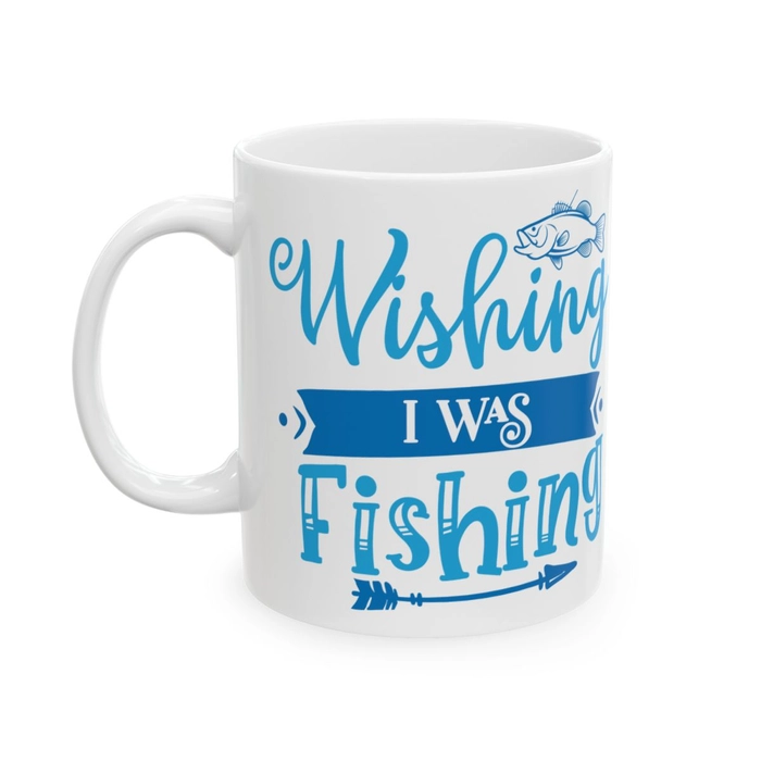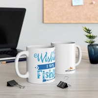 [Printed in USA] Wishing I was Fishing - White 11oz Ceramic Coffee Mug
